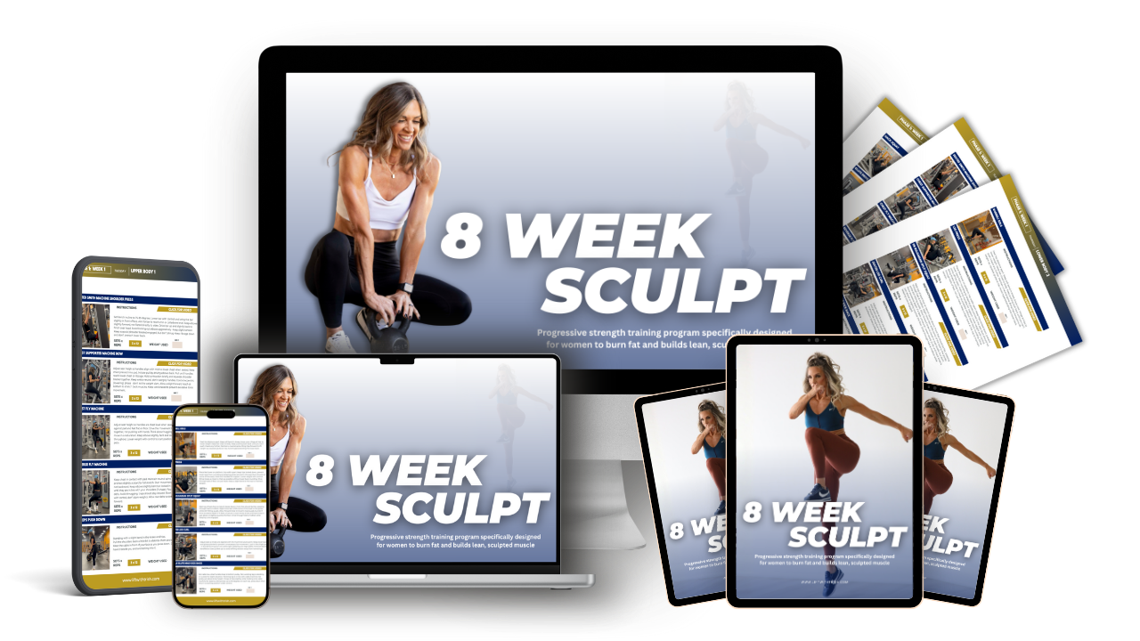 + 8-week progressive training program designed for women 40+ to burn fat and sculpt lean muscle